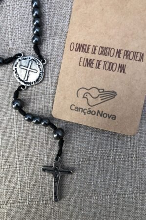Terço Colar Hematita “Medalha das Duas Cruzes”