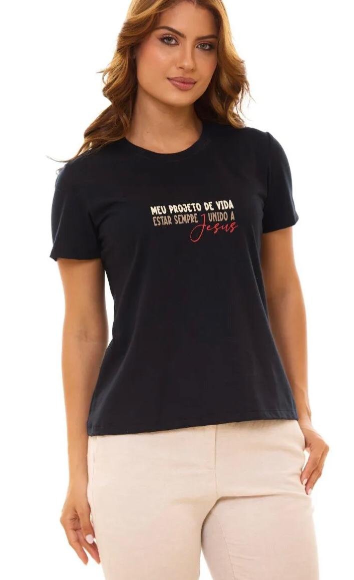 Baby look “Foco força e fé”